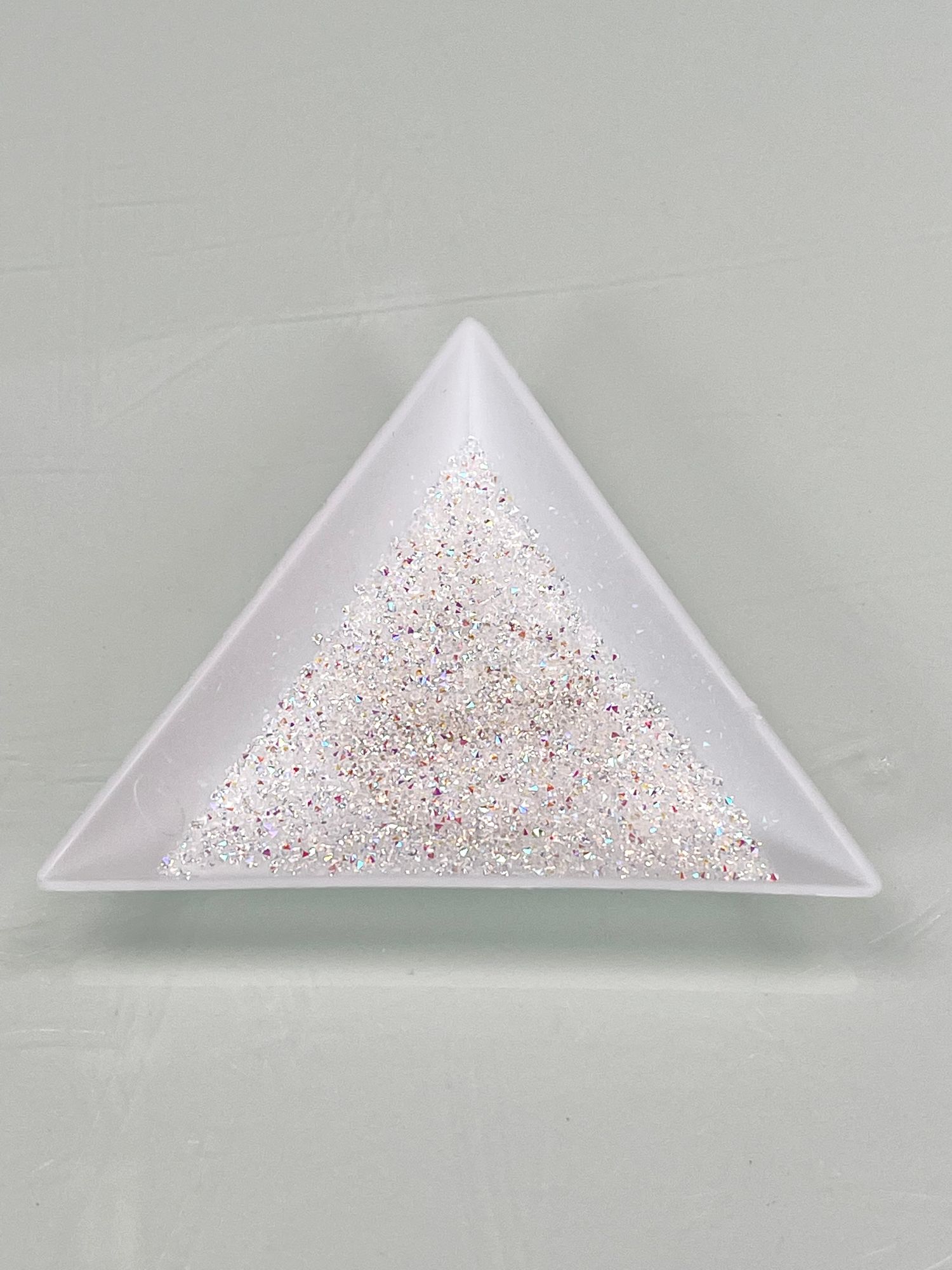 The triangle shape of this gem dish is key! This allows you to easily pour your glitter or gems back into their jars by using one of the three corners.