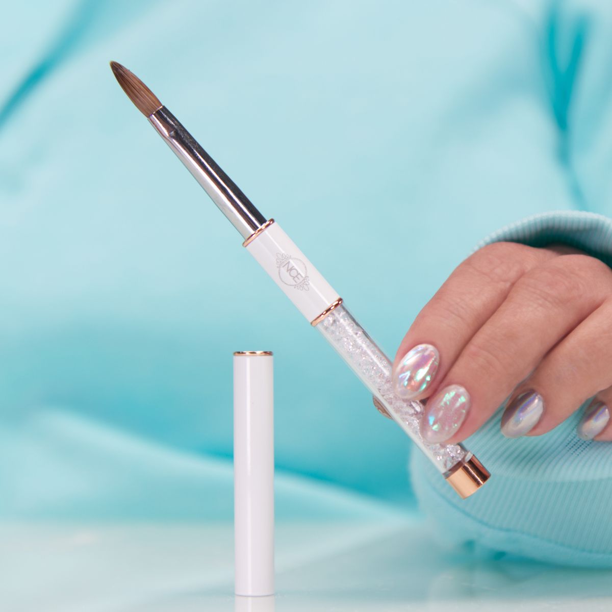 I've designed this beauty to check both of those boxes! In White and Rose Gold and made with kolinsky, this Oval 8 brush is an ideal size for creating Acrylic nails. I always design my brushes with a cap, which is so important for the longevity of a happy brush!