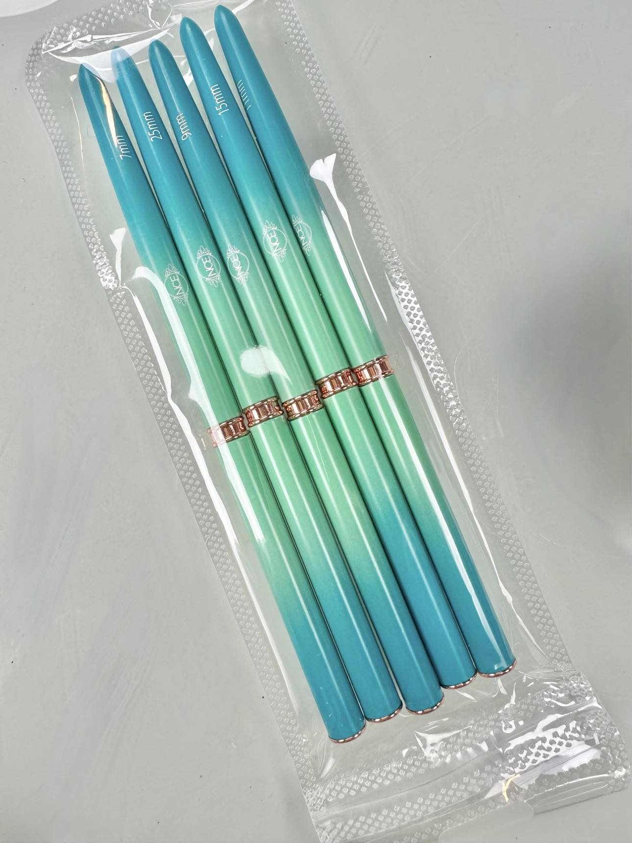 This set comes with five versatile nail art brushes of various sizes and lengths, which are excellent for hand-painting expressive details on the nail.