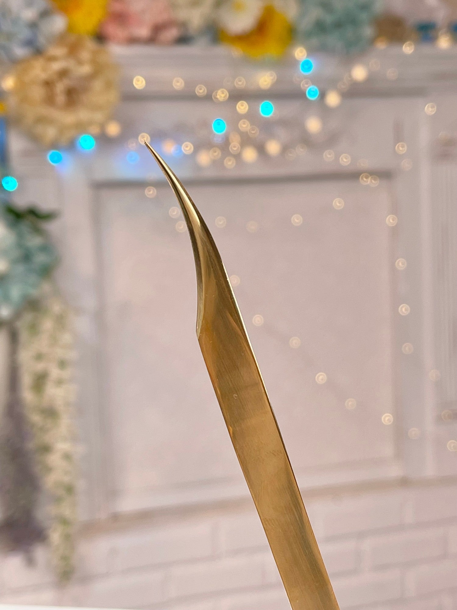 These tiny tipped tweezers grab even the smallest nail art pieces, making tedious tasks a lot easier! Save the frustration, and do it with style in a gold coloured finish.